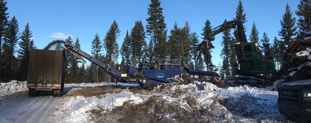 Many interior communities are surrounded by scenic hills and forests, but these communities are at risk for significant loss of life and property if wildfire ever got out of control in the area. Reducing wildfire risk means decreasing wood fibre fuel sources in the forest, and one local contractor called upon EM3 to help. Wood had been piled throughout the wildfire risk reduction prescription areas but needed to get off site before dry spring/summer conditions arrived.